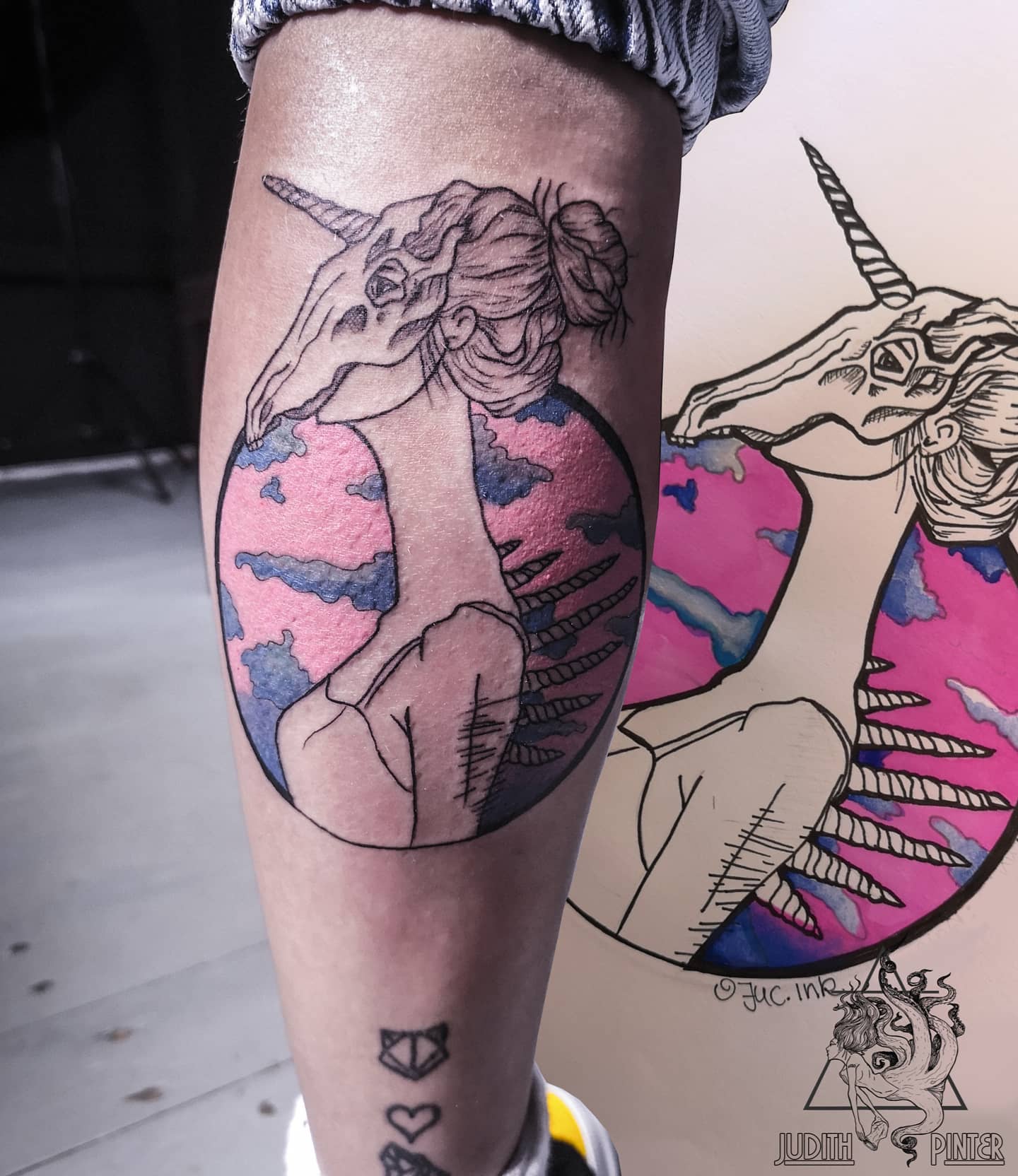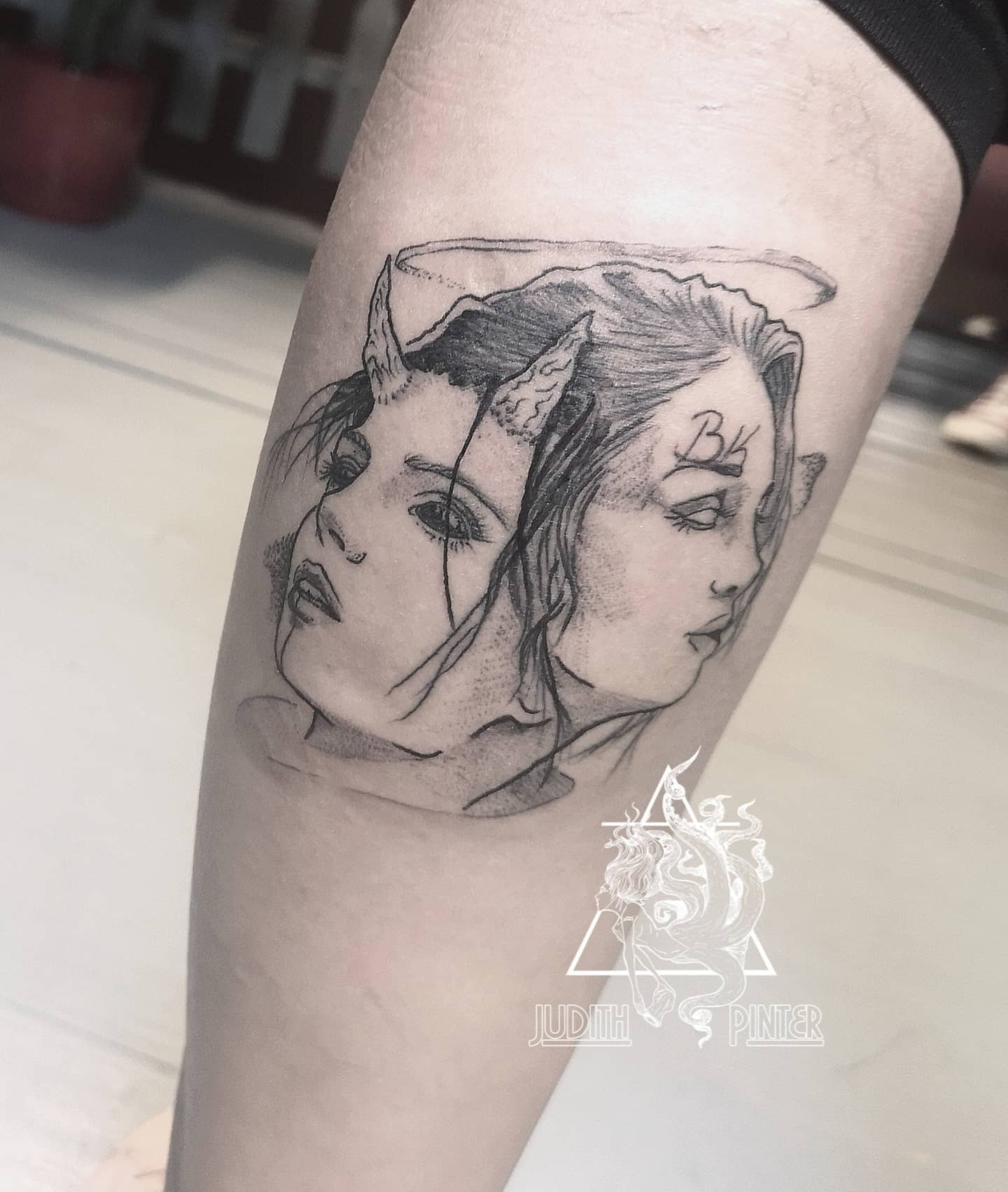 Pintér Judit vagyok, grafikus (innen is a szerelem). Egyetemen fogtam először tetováló gépet a kezembe ,szigorúan magamra készítettem az alkotást (12 éve kb😅). Miután 5év után hazaköltöztem Angliából, akkor kezdtem igazán (újra) tetoválni. Elindítottam egyéni vállalkozásom a Judith Pinter Juc.ink-et, majd 2019-ben megnyitottam saját üzletemet a Black Heart Tattoo-t, oszlopos tagommal/kollégámmal és barátommal Kelemen Jocival.