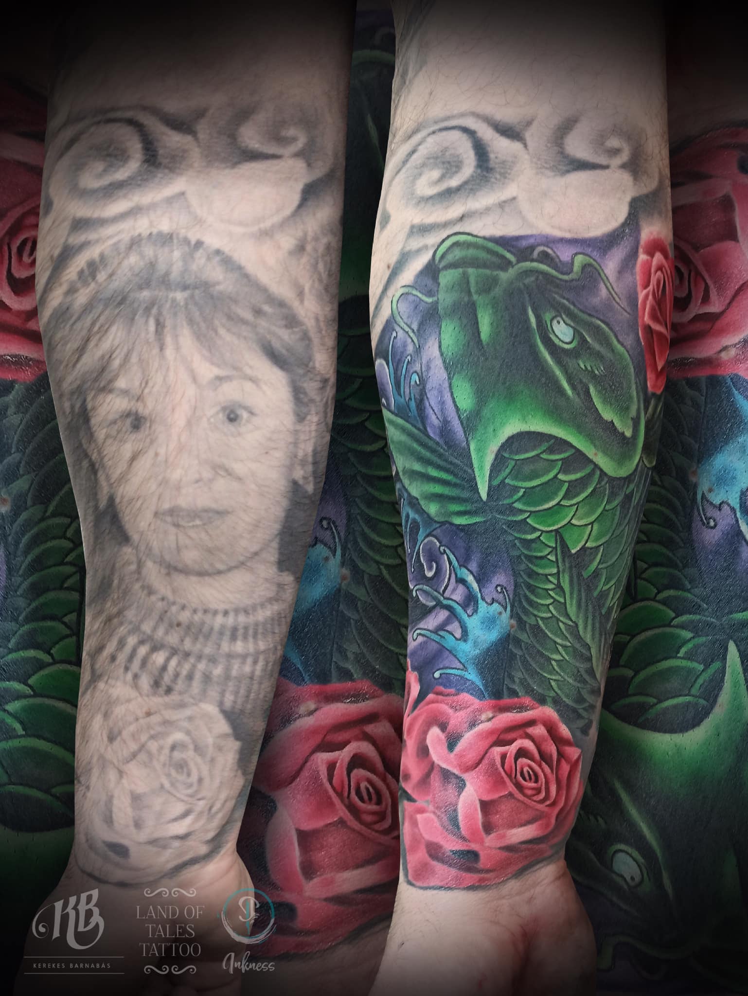 a munka, vagy az egyetemi szívás, amit már nem akartam tovább csinálni. Végül ott hagytam az iskolát és elindultam a saját utamon. Elkezdtem inspirálódni, komolyan ráfeküdni a saját rajzok és tetoválások készítésére. Szépen fokozatosan próbáltam kizárni a másolást és az ügyfél problémáját egyedileg megoldani. A legközelebb a színes tetoválások, képregényszerű, mesés világ (neo tradícionális) áll hozzám, ám vannak realisztikus felkérések is.